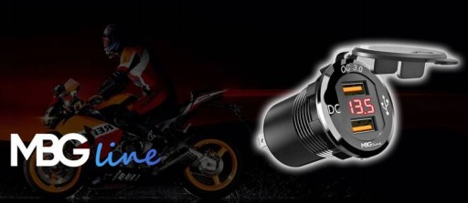 Wodoodporna szybka ładowarka MBG LINE do samochodu, motocykla, skutera, quada, motorówki 2x USB QC3.0