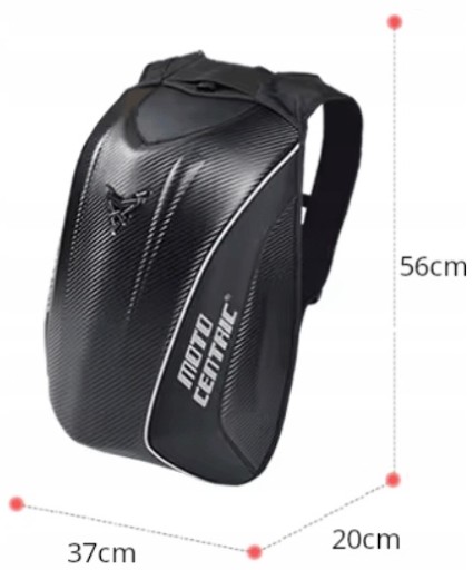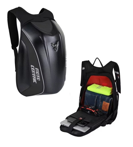 Plecak motocyklowy firmy Motocentric, o sztywnej konstrukcji typu skorupa.