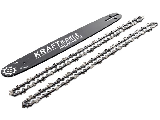 Zestaw składający się z prowadnicy oraz dwóch łańcuchów. Wykonany z najwyższej jakości materiałów. Prowadnica przystosowana jest do pilarek wielu marek, między innymi Stihl, Husqvarna, Alpina, Kraft&Dele oraz wielu innych pracujących z łańcuchami 3/8 i szerokością ogniwa prowadzącego 1,5mm.