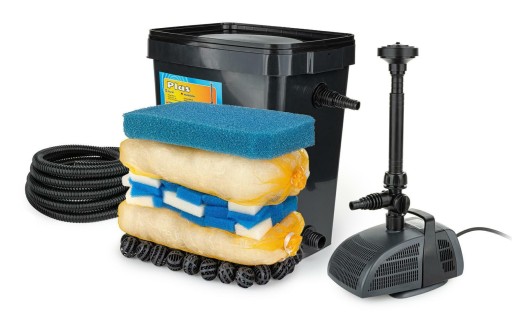 BIOfiltr Basic Plus to podstawowy, kompletny zestaw filtracyjny do oczka wodnego lub stawu. W zestawie znajduje się optymalna pompa o mocy 2000l/h oraz niezaginający się wąż o długości 4m, która w połączeniu z filtrem jest w stanie zaspokoić oczko wodne o pojemności do 10 000 l.