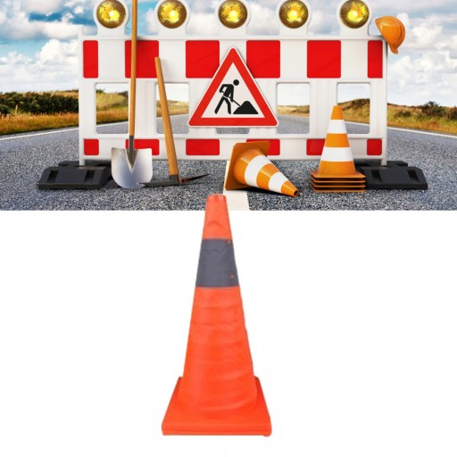 2. ODBLASKOWY: Składany stożek drogowy wykonany jest z wodoodpornej tkaniny fluorescencyjnej i materiału z folii odblaskowej, która jest odporna na starzenie pod wpływem światła i ma długą żywotność.