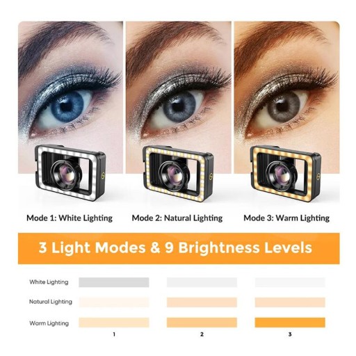 2. Światło wypełniające LED: 40 diod LED natychmiast oświetla obiekt i otoczenie ciepłym, ciągłym światłem. Posiada trzy tryby światła ciepłego (2700 K), naturalnego (4500 K) i białego (6500 K) oraz trzy poziomy jasności: niski, średni i wysoki. Naciśnij i przytrzymaj boczny przycisk zasilania przez 2 sekundy, aby włączyć światło wypełniające, a następnie naciśnij przycisk zasilania, aby zmienić kolor światła.
