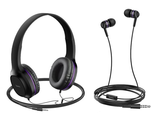 Słuchawki nauszne i douszne z mikrofonem - dwupak słuchawek Hoco W24 zarówno do nauki jak i do słuchania muzyki.