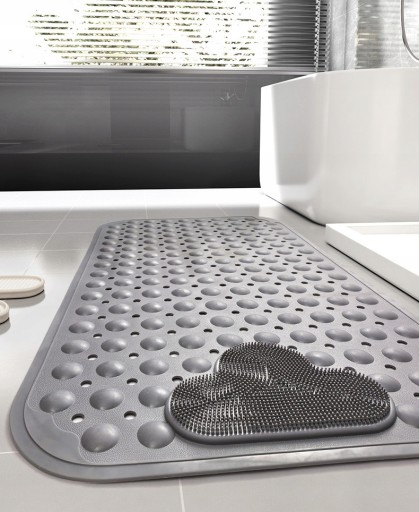 Jest to antypoślizgowa podkładka pod prysznic, która masuje stopy i oczyszcza martwe rzeczy skóry. Na teksturowanym włosiu, poruszając się z przodu iw tył, może masować stopy, wspomagać i wspomagać krążenie krwi.