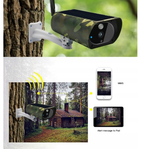 KAMERA SOLARNA GSM 4G pobiera Internet z karty SIM panel solarny ładujący akumulatory, zapis na kartę mSD do 128GB, lub w chmurze -Podgląd ONLINE!