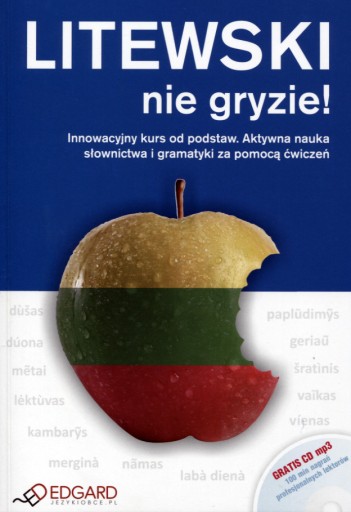 Litewski nie gryzie! to kurs, z którym: - aktywnie uczysz się języka od podstaw, - przyjemnie poznajesz użyteczne słownictwo, - praktycznie trenujesz znajomość gramatyki, - uczysz się gotowych zwrotów konwersacyjnych, - poznajesz współczesny, codzienny język litewski. Kurs przeznaczony jest dla wszystkich, którzy chcą łatwo i przyjemnie opanować podstawy języka litewskiego na poziomie komunikatywnym. Książka (152 str.) opiera się na niezwykle atrakcyjnej metodzie aktywnej nauki języka poprzez rozwiązywanie różnorodnych ćwiczeń. W rozdziałach tematycznych zamieszczono około 40 najpopularniejszych zagadnień, krótkie dialogi lub teksty z polskim tłumaczeniem, gramatykę w pigułce, porcję niezbędnego słownictwa, ponad 100 ćwiczeń, ciekawostki o kulturze oraz specjalną sekcję Sprawdź się z zadaniami podsumowującymi. Ponadto na marginesach zamieszczono praktyczne minisłowniczki, a na końcu podręcznika zbiorczy słownik. Do książki dołączono gratis płytę CD z nagraniami profesjonalnych lektorów, która pomaga w nauce poprawnej wymowy oraz ćwiczeniu rozumienia ze słuchu. Odkryj unikalną metodę aktywnej nauki. Przekonaj się, że litewski nie gryzie!