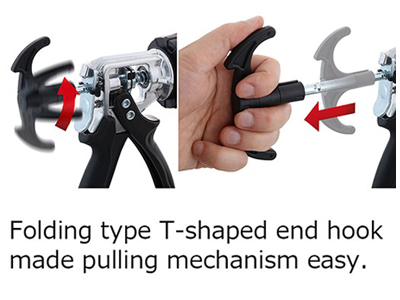- składany hak końcowy w kształcie litery T sprawia, że mechanizm ciągnący obsługuje się bez wysiłku