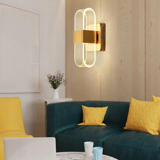 Nordic Akrylowy Kinkiet Ściemniana Lampa Kryty Złote Linie W Paski