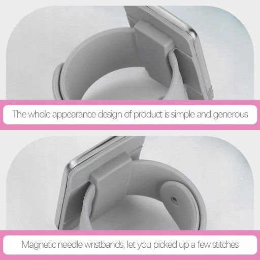 Możesz go użyć do przytrzymania igieł podczas szycia ubrań. Magnetyczna opaska na nadgarstek umożliwia bezpieczne i szybkie podniesienie kilku igieł