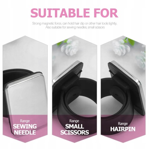 Ta magnetyczna opaska na nadgarstek nadaje się nie tylko do przytrzymywania szpilek, aplikacji, igieł do haftu, ale także spinek fryzjerskich.