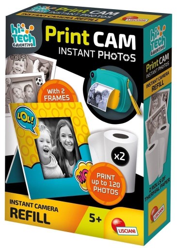 Dwa wkłady z rolkami do drukowania zdjęć z natychmiastowego aparatu Hi-Tech. Każdy pozwala na drukowanie do 60 zdjęć. Dodatkowo w zestawie dołączono dwie kolorowe ramki na zdjęcia.