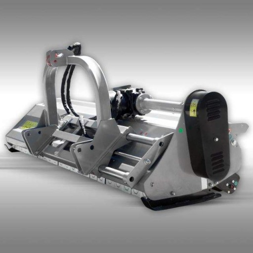 Kosiarka posiada układ zawieszenia oraz przekładnię umożliwiającą współpracę z ciągnikami posiadającymi tylni TUZ oraz siłownik hydrauliczny umożliwiający boczne przesuwy aparatu tnąco - rozdrabniającego.