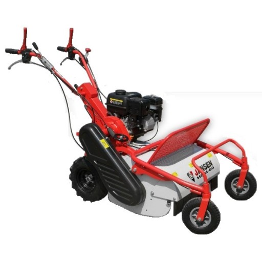 Oferujemy fabrycznie nowe mikro ciągniki jednoosiowe uzbrojone w kosiarkę bijakową Jansen HSM-60 napędzane silnikami benzynowymi o mocy 8 KM.