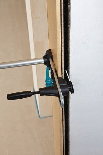 Zestaw narzędzi do montażu ościeżnicy drzwiowej. Umożliwia ustawienie i montaż ościeżnicy w zaledwie kilku krokach bez pomocy dodatkowych osób.