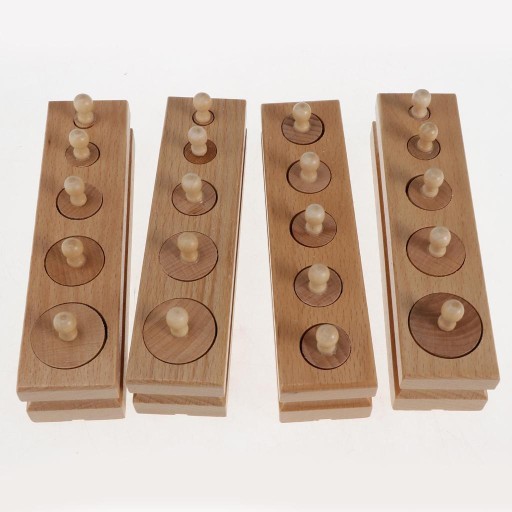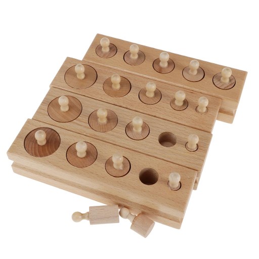 Montessori Sensorial Material - brązowe schody różowe klocki cylindryczne