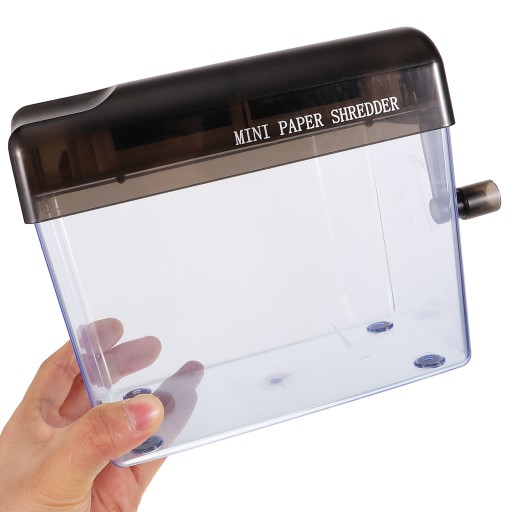 Ta mała i wygodna obcinarka do papieru jest wykonana z wytrzymałego ABS i jest przymocowana do przezroczystego pojemnika na kurz, aby ograniczyć bałagan. Z łatwością tnij i niszcz dokumenty papierowe. Nie musisz go nawet podłączać! Po prostu obróć go ręką, aby zniszczyć dowolny papier w ciągu kilku sekund.