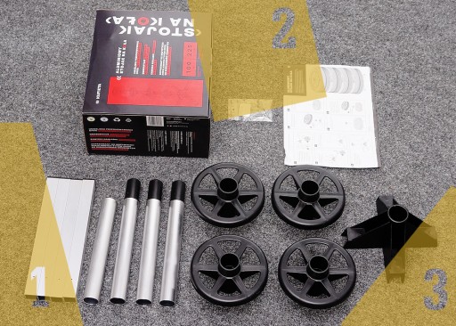 - Regulowane wsporniki / przekładki - możliwość odjęcia dowolnej podstawki w celu zwiększenia maksymalnej szerokości opony.
