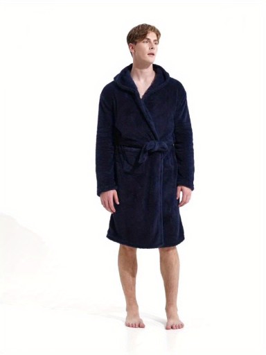 Мужской шерстяной халат с капюшоном, мягкий шерстяной халат