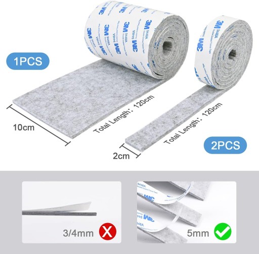 W zestawie znajdują się aż 3 rolki taśmy filcowej o różnych rozmiarach, co daje Ci elastyczność i możliwość zastosowania ich do różnych mebli w domu. Bez względu na to, czy są to krzesła, stoliki czy szafki, te podkładki zapewnią skuteczną ochronę dla Twojej podłogi.