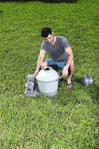 - Brak ryzyka powrotu piasku do basenu przy płukaniu wstecznym