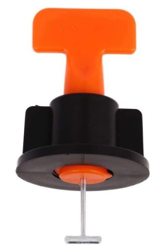 Najważniejszymi elementami uchwytu jest metalowy trzon oraz czarna nakrętka - to one w głównej mierze wykonują poziomowanie płytek.