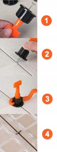 Zestaw znacznie ułatwia układanie płytek. Zalecane jest stosowania wraz z tradycyjnymi krzyżykami oraz demontaż przed całkowitym wyschnięciem kleju.