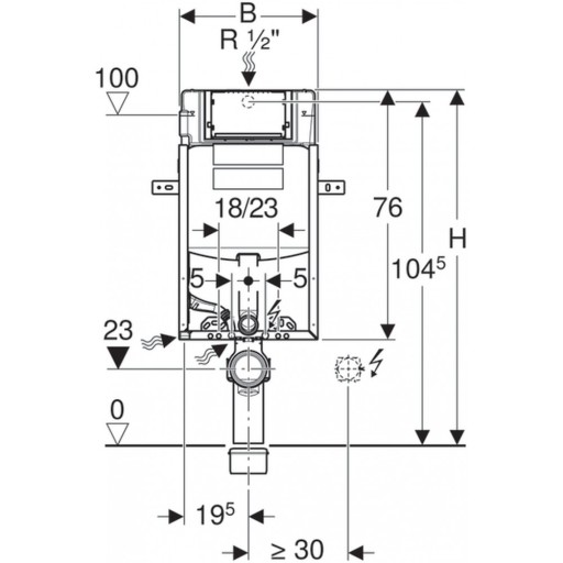 - Geberit Sigma 12 cm (UP320) naścienny zbiornik płuczący ze sterowaniem z przodu