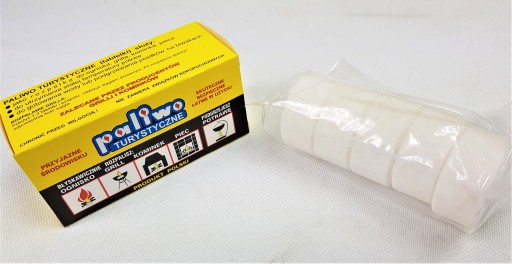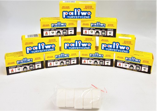Heksaminowe paliwo turystyczne w kostkach do stosowania na biwaku, podczas wędrówek lub na rybach. Jedna 20-gramowa kostka płonie przez około 20 minut pozwalając zagotować w warunkach polowych wodę na herbatę lub podgrzać posiłek