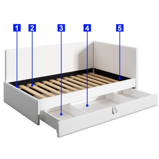 - Uchwyt do szuflady zawsze jest w wybranym kolorze łóżka.