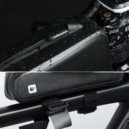 Torba jest mocowana do ramy roweru za pomocą solidnych pasków, które zapewniają stabilność w trakcie jazdy. Dwa systemy regulacji utrzymują torbę w miejscu, a paski wykonane z antypoślizgowej miękkiej skóry redukują tarcie na rurze rowerowej.