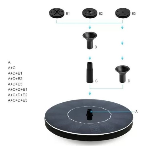 - Wysokość strumienia wody 30-60cm (zależne od nasłonecznienia)
