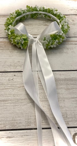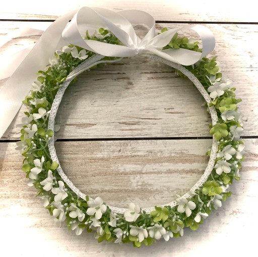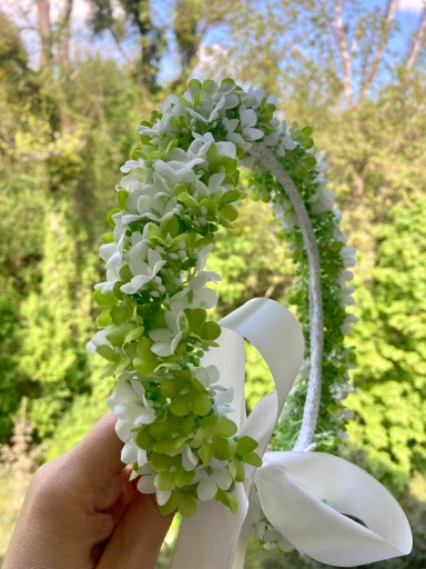 Przedmiotem sprzedaży jest wyjątkowy wianek komunijny - polskie rękodzieło, wykonane z najwyższą starannością oraz z dobrej jakości produktów. Model dostępny na tej aukcji jest wykonany ze sztucznych produktów, które do złudzenia przypominają żywe drobne kwiatuszki.
