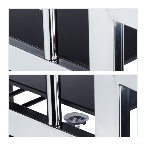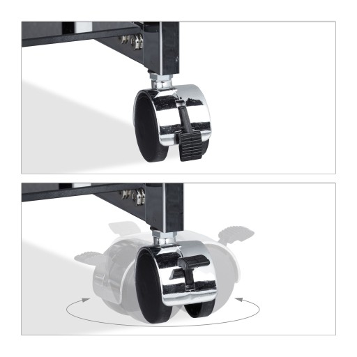 ✅ Nowoczesne połączenie czarnego szkła z chromowanym, metalowym stelażem z pewnością wpasuje się do stylowych wnętrz. ✅Szklane półki mobilnego barku to mnóstwo miejsca na talerze, miski i inne naczynia.