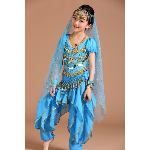 Детский костюм-гарем для танца живота с короткими рукавами, S, синий