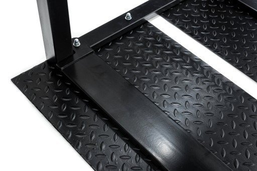 Podłoga wykonana jest z grubej, ryflowanej blachy, która doskonale zapobiega ślizganiu, zwiększając bezpieczeństwo walczących.