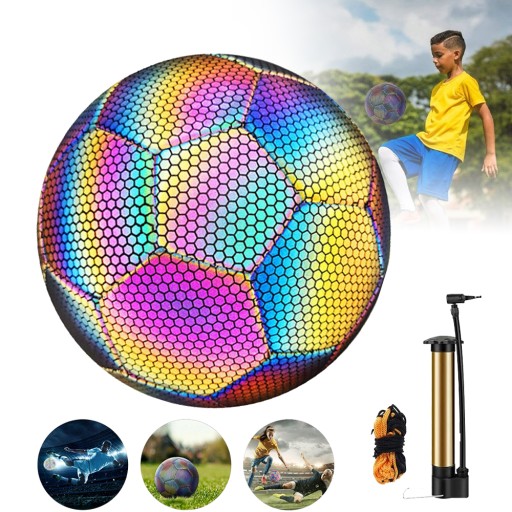 ⚽【Refleksyjny efekt】 Holograficzna piłka nożna to oficjalna piłka nożna, która wydaje się holograficzna na zdjęciach lub filmach lub świeci, gdy lampa błyskowa aparatu telefonu jest włączona. Szeroka gama żywych, odważnych i atrakcyjnych kolorów gwarantuje, że każdy znajdzie piłkę pasującą do jego stylu. Ta świecąca w ciemności piłka nożna gwarantuje mnóstwo zabawy, radości i zabawnych chwil w ciemności.