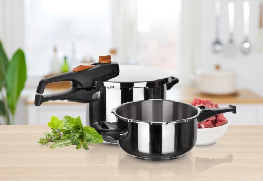 Zestaw dwóch szybkowarów Adagio z zamkiem bagnetowym marki Banquet został wykonany ze stali nierdzewnej 18/8 oraz tworzywa sztucznego. Naczynia posiadają jedną wspólną pokrywkę. Można używać obydwu garnków naprzemiennie - w zależności od potrzeb i wielkości przygotowywanego posiłku. Grubość ścianek naczyń to 1 mm, co pozwala na dłuższe utrzymywanie ciepła. Szybkowary posiada grube, wielowarstwowe dno, dzięki czemu skumulowane podczas podgrzewania ciepło równomiernie się po nim rozchodzi. Przyśpiesza to gotowanie, pozwalając zaoszczędzić czas, a tym samym zużycie gazu czy energii elektrycznej. Takie dno pozwala także dłużej utrzymać temperaturę po zakończeniu gotowania. Pokrywa zawiera dwa zawory, główny zawór roboczy i pomocniczy (zawór bezpieczeństwa) na wypadek zapchania się zaworu roboczego, co powoduje, że szybkowar jest maksymalnie bezpieczny. Podczas gotowania możemy regulować ciśnienie wewnątrz naczynia, dzięki czemu łatwo i wygodnie możesz optymalizować tempo gotowania, dostosowując ciśnienie do wariantu przygotowywanej potrawy.