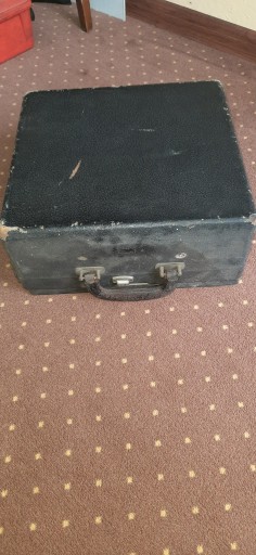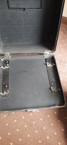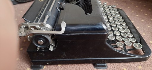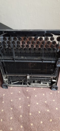 Maszyna do pisania USA ROYAL, stan dobry, do czyszczenia. Brak prawego pokrętła na wałku. Drewniana skrzynka posiada otarcia. Mechanizmy maszyny są brudne, brak czcionki z kropką i przecinkiem. Brak kluczyka do zamka. Maszyna pochodzi z likwidacji Urzędu Bezpieczeństwa w Łodzi.