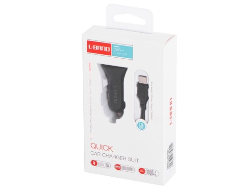 Быстрое автомобильное зарядное устройство 2,1А 2x USB + USB C кабель L-BRNO
