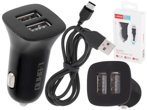 Ładowarka samochodowa szybka 2.1A 2x USB + kabel USB C L-BRNO