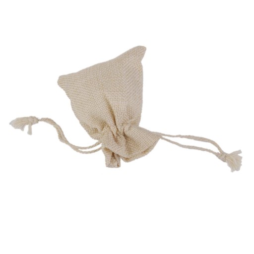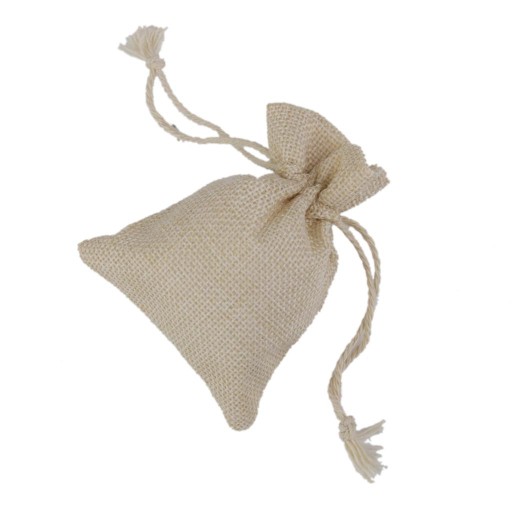 Małe lniane torby na prezenty z juty w stylu vintage. Każda torebka jest wyposażona w sznurek, dzięki czemu torebki można łatwo zamykać i otwierać