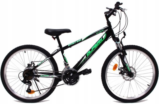 Tarczowe hamulce mechaniczne gwarantują precyzyjne i skuteczne hamowanie, co zwiększa bezpieczeństwo i kontrolę na każdej trasie. Opony o rozmiarze 24"x1.75" zapewniają doskonałą przyczepność, umożliwiając jazdę po różnych nawierzchniach.