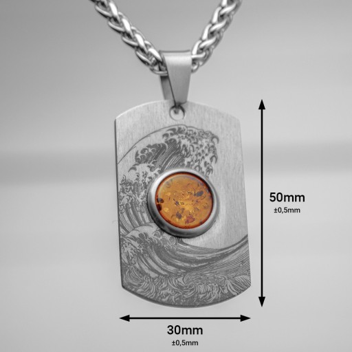 СЕРЕБРЯНЫЙ ТИТАНОВЫЙ КУЛОН ЖЕТОН WAVE XL КОНЬЯК + ЦЕПЬ И КОРОБКА