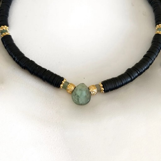 Natural Turquoise Beaded Necklace for Women Men Bohemian Black Soft Ceramic