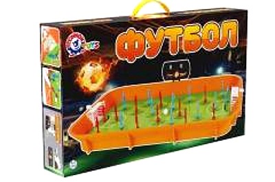 Klasyczna gra w piłkarzyki. Boisko zostało wykonane z zielonego tworzywa. Posiada pomarańczowe obramowanie imitujące trybuny. Piłkarzyki osadzone na sprężynkach zostały podzielone na dwie drużyny (czerwoni i niebiescy). Każda z drużyn posiada bramkarza, którym możemy poruszać za pomocą specjalnego uchwytu. Do zestawu została dołączona piłeczka i tablica z wynikiem. Wymiary opakowania: 53x8x31cm Wiek: 5+