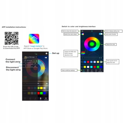 Personalizuj swoje światła z 16 milionów kolorów, 213 dynamicznych trybów, synchronizacja muzyki, timer, DIY kolor, dimmable, wbudowany mikro telefon functionby 'Magic lantern 'telefony app.