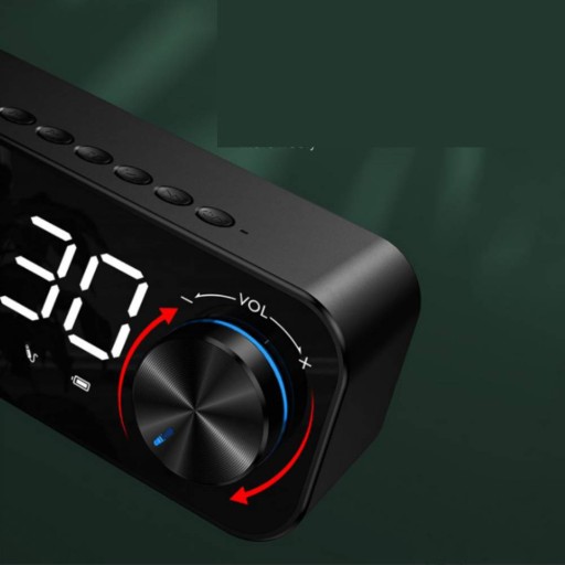 Radio cyfrowe Budzik Zegar z głośnikiem Bluetooth z wyświetlaczem LED czasu i alarmu oraz powierzchnią lustrzaną na pulpicie