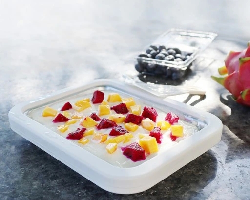Za pomocą skonfigurowanej szpatułki rozprowadzamy jogurt i pozostawiamy go na około 1-2 minuty. Gdy potrawa zastygnie, jest gotowa do podrzucenia i podania za pomocą szpatułki