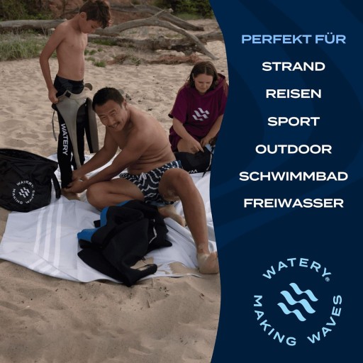 ③✅ Miękki materiał i bardzo chłonny: wyprodukowany z wysokiej jakości tkaniny z recyklingu, 88% poliestru pochodzącego z recyklingu z 12 zebranych plastikowych butelek na ręcznik i 12% poliamidu o dużej gramaturze 220 g/m², ręcznik plażowy zapewnia luksusowe uczucie na skórze. Szybko wchłania wodę i jest bardzo chłonny.