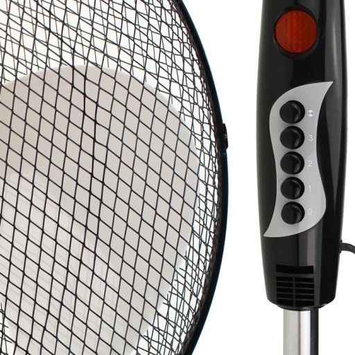 Wyposażony w funkcję automatycznej oscylacji, dzięki czemu może obracać się w kierunkach bocznych. Zwiększa to zasięg oddziaływania urządzenia. Dodatkowo kierunek nadmuchu można regulować zmieniając ręcznie kąt nachylenia głowicy. Solidna podstawa zapobiega upadkowi, a możliwość regulacji wysokości za pomocą rury teleskopowej, pozwala dodatkowo na ustawienie odpowiedniego pułapu nawiewu.